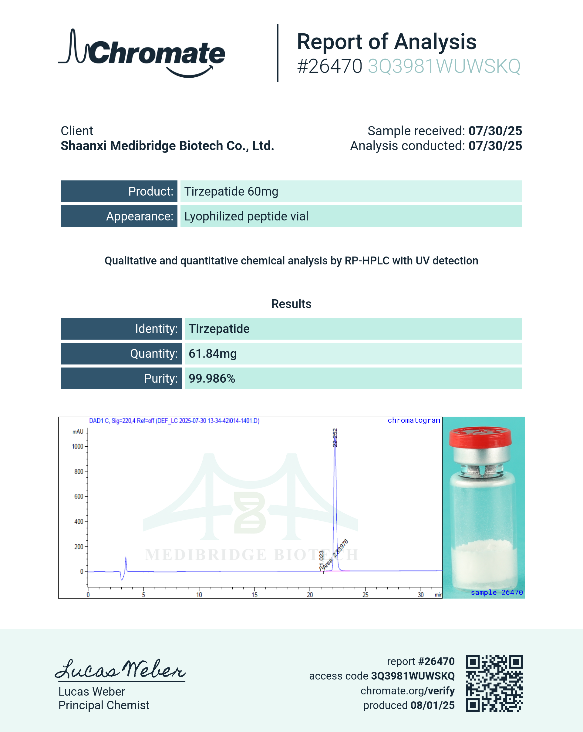 | HelixBridge | Tirzepatide100mg, 10mg, 15mg, 20mg, 30mg, 5mg, 60mg | — | — | 07/30/2025 |
