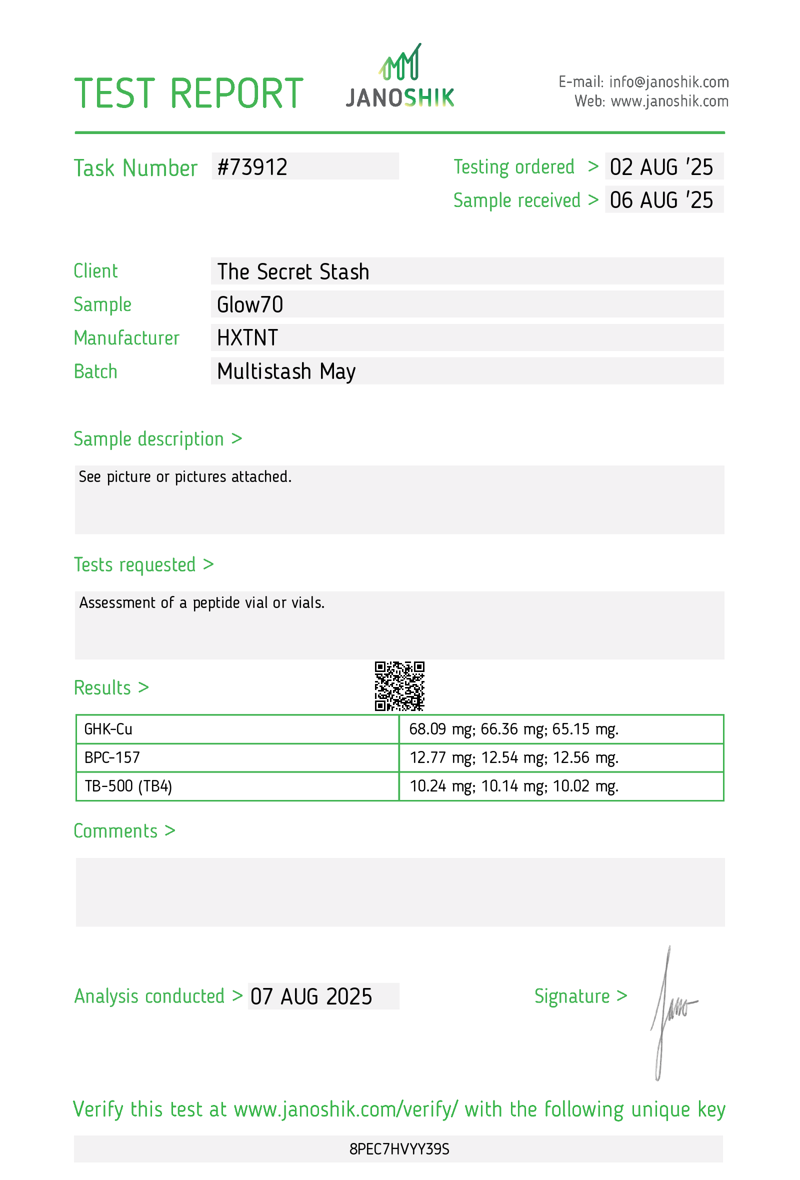 | Ultrapept | BPC15710mg | — | — | 07/25/2025 |