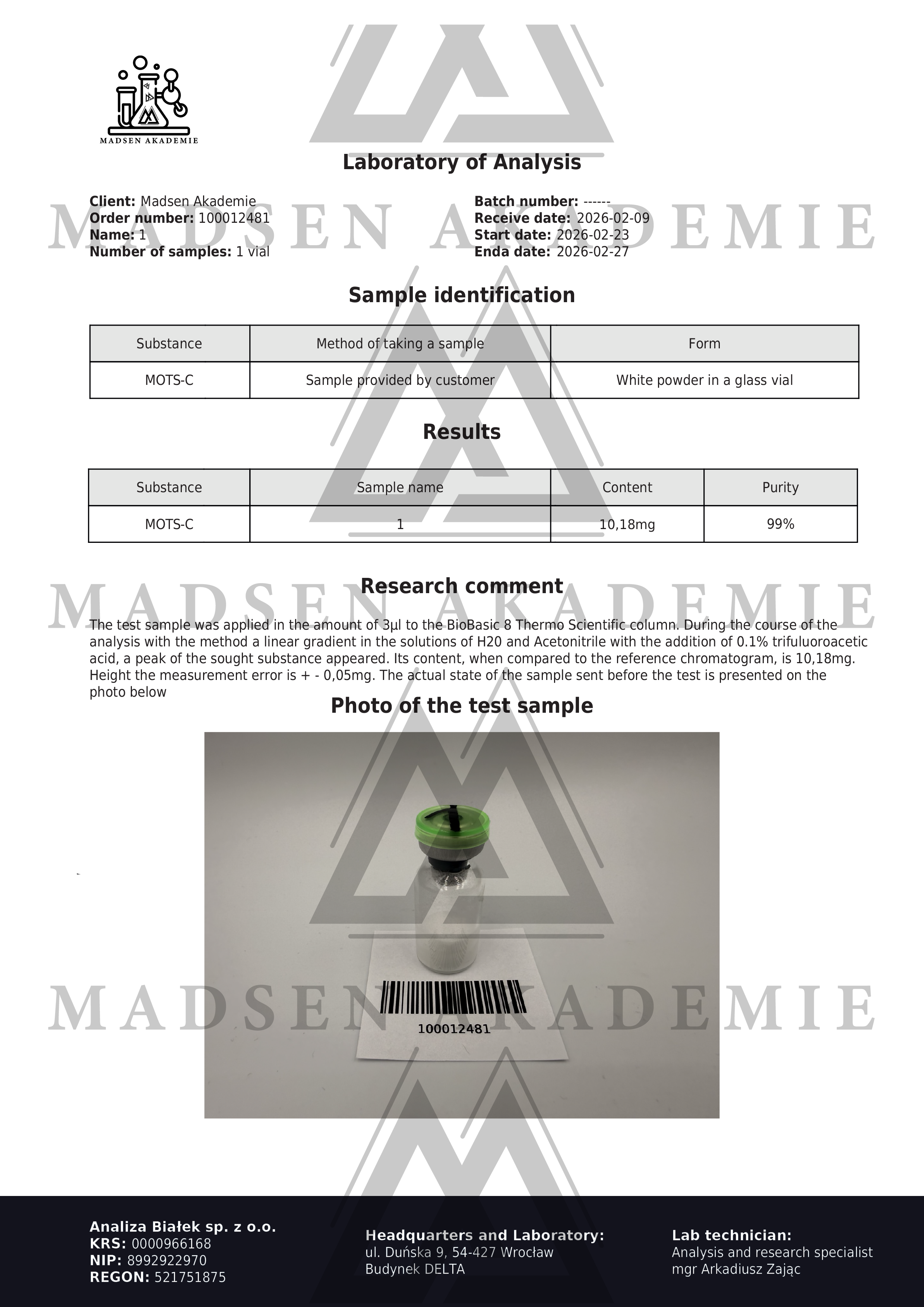 Yimei is very fast and provided 99%+ purity. Thank you Peptaura