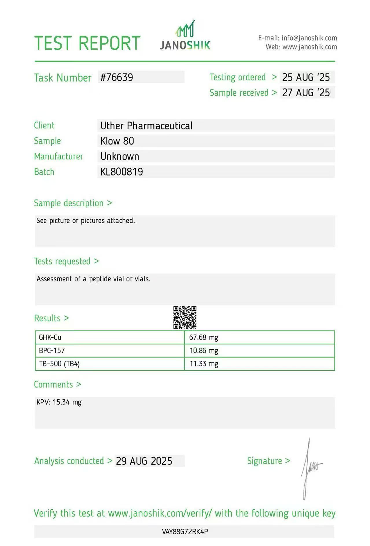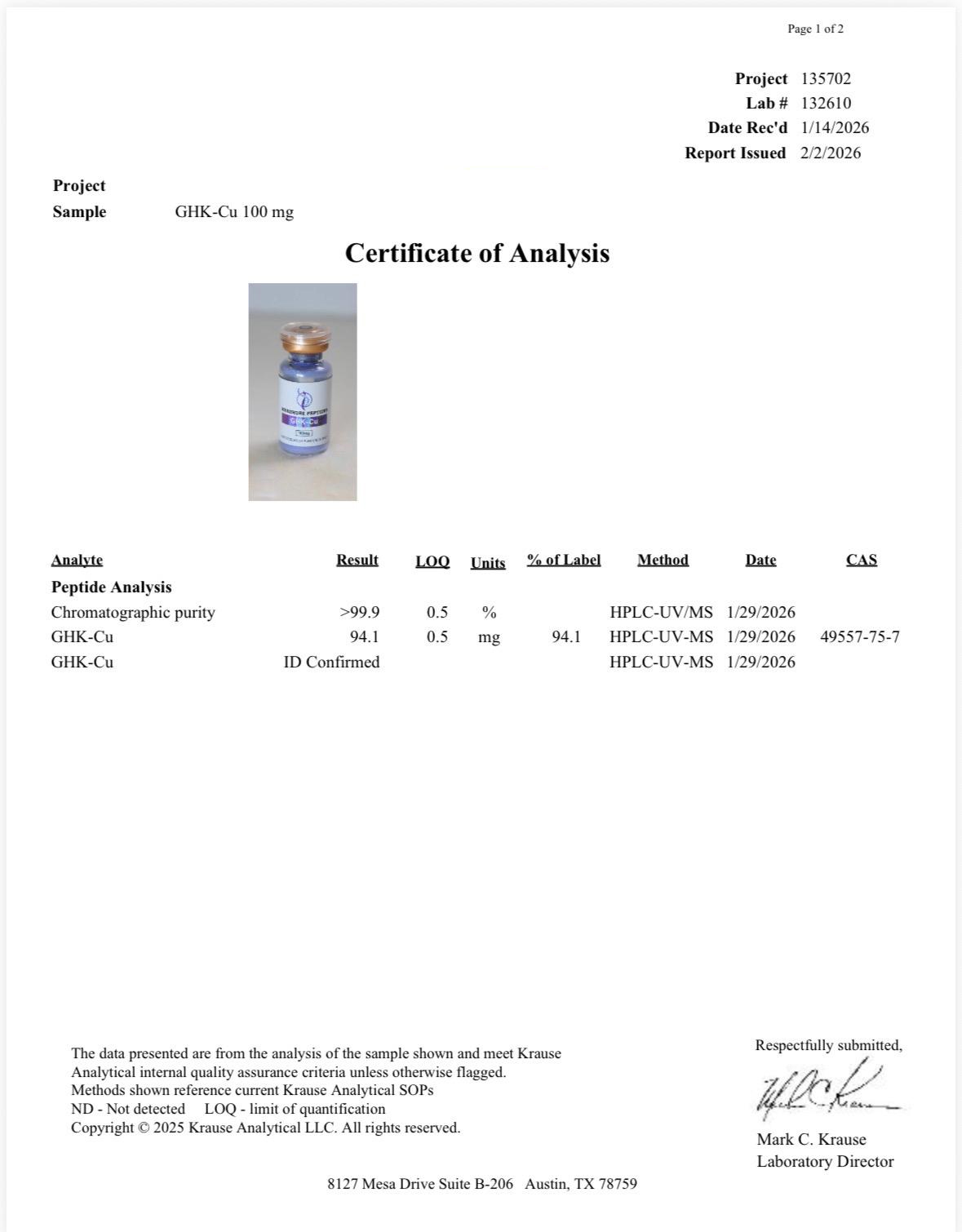 Certificates of Analysis
